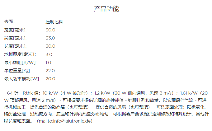 ALUTRONIC 针状散热器PO 30-30-33-AL